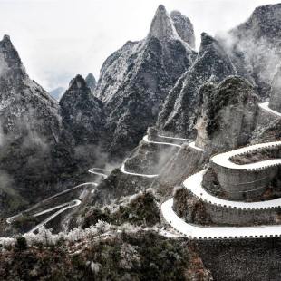 我们乘坐了世界最长的高山客运索道——【天门山索道】,从高空远观了“天下第一公路奇观”的天门山盘山公路——【通天大道】。通天大道共有九十九个弯,大道两侧绝壁千仞,空谷幽深,180度的急弯此消而彼长,似玉带环绕,层层叠起,弯弯紧连,依山籍壁,直冲云霄。